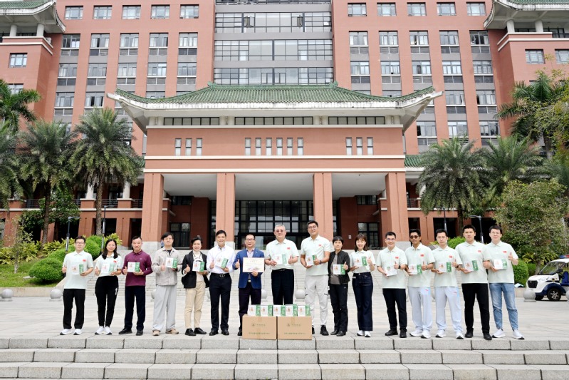 为支持学校更好地服务第十五届全国运动会(下称“第十五届全运会”),2025年10月28日上午,广州日辉农业科技有限公司董事长、1992届农业贸易专业崔国辉校友向我校捐赠“壹斤菜”浓缩植物萃取精华片100盒。学校在行政楼南广场举行了捐赠仪式,党委常委、副校长杨运东出席仪式并代表学校接受捐赠。