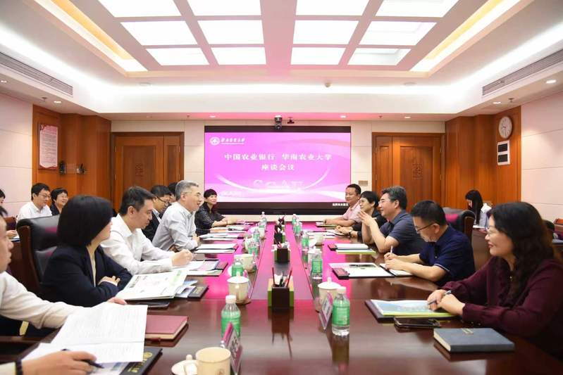 钟强详细介绍了学校的办学历史、学科规模及校友工作成效。他指出,学校办学历史悠久,是华南地区唯一的农林类国家“双一流”建设高校,办学规模位居省属高校前列,且学校连续多年在广东省高校捐赠排名中名列前茅,校友对母校的认可度和凝聚力较高。他表示,学校与农业银行合作渊源深厚、基础扎实,在多方面都有良好合作基础。希望双方进一步拓展合作领域,在校园金融服务、智慧校园建设、乡村振兴服务等方面探索创新,推动双方合作走深走实,实现互利共赢。